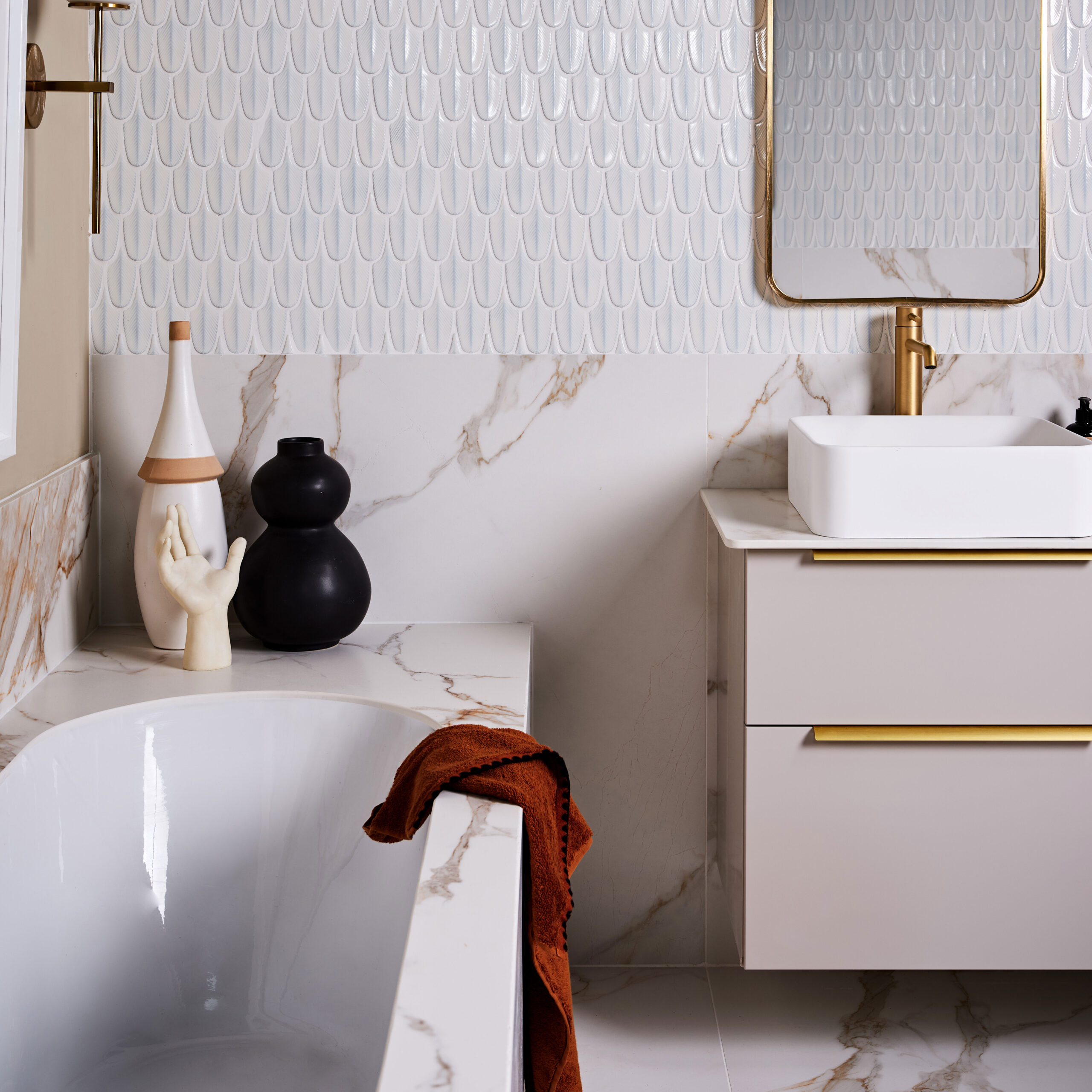 Scultpure Grand, a premium porcelain in a large format, has a detailed 3-D effect enhancing the veining. With a brushed finished and available in six shades, it will elevate any interior space. Also available in an extra large format, please contact us for more information.